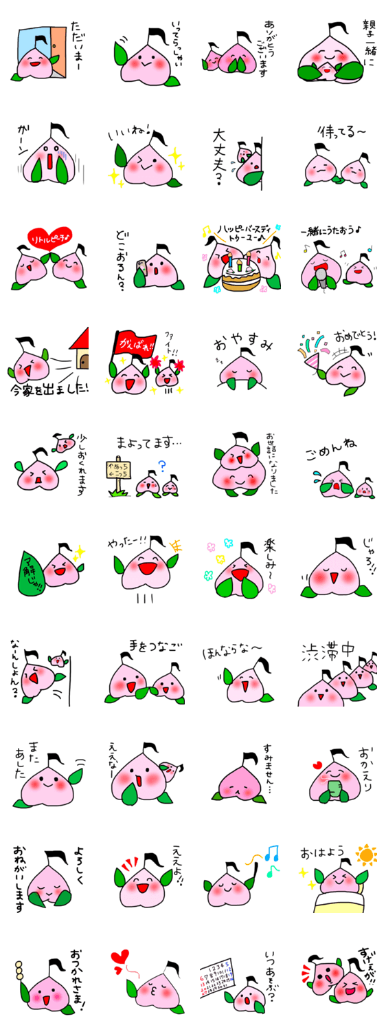 岡山県倉敷市で活躍するママバンド、ほっこり桃のキャラクター♪リトルピーチのラインスタンプ☆子育て中の方もそうでない方もよろしくお願いします♪
