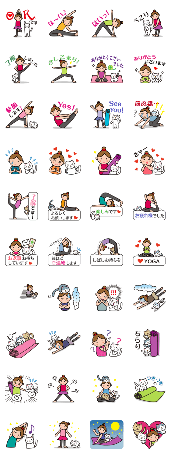 ヨガと猫好きのためのスタンプ。 ヨガのレッスンにも使えるポーズスタンプです。ちび猫たちに癒されます。フランス語バージョン「YOGA avec des chats」もあります。