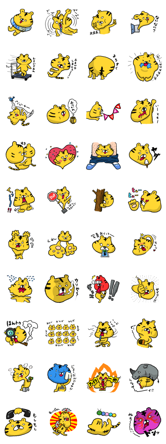 スタンプ説明 こどものトラちゃんのたくさんのリアクション。