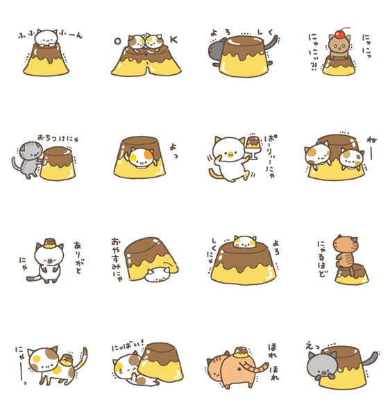かわいいねことプリンの合体したスタンプだよ。 イラストレーター森千夏のスタンプだよ。