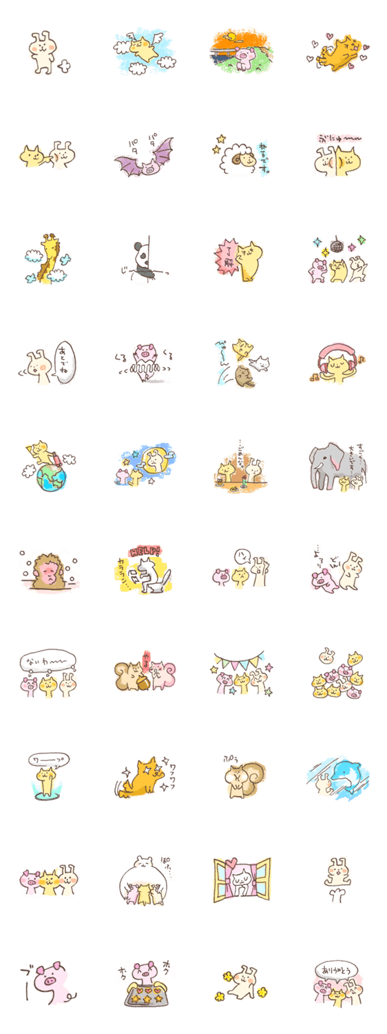 スタンプ説明 ゆるい動物達がワシャワシャしてるスタンプです。