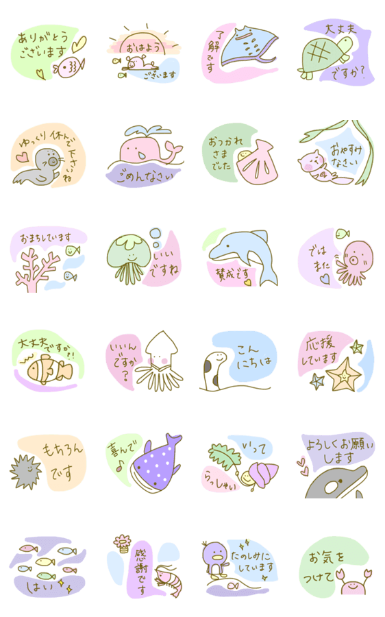 使いやすい敬語を集めました。大人にやさしいスタンプです。 今回は海の生き物たちです。