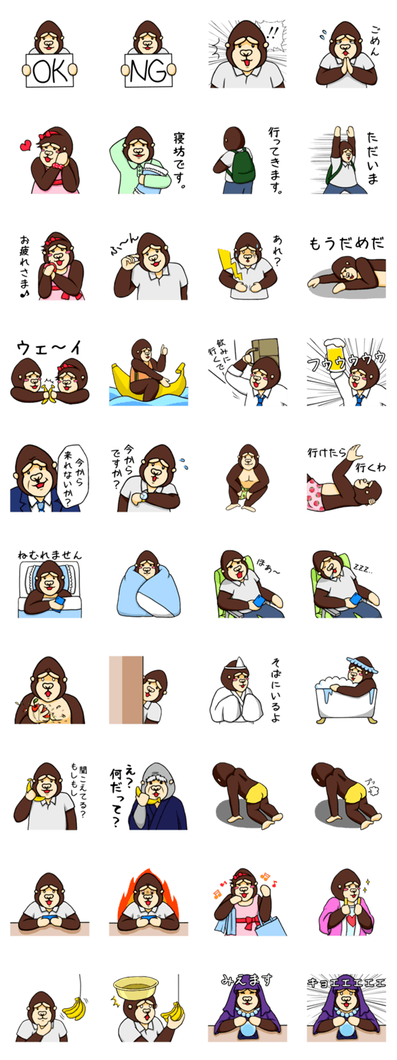 ほのぼのごりらさん達がお届けする日常で使えるスタンプです。
