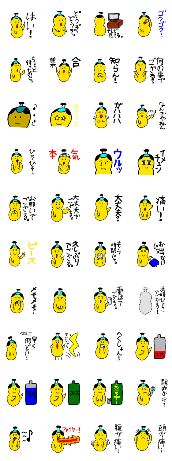 殿さまの格好をしたひよこ、『とのさまひよこ』の第2弾スタンプです!今回も日常生活で使えるスタンプになっていると思います。