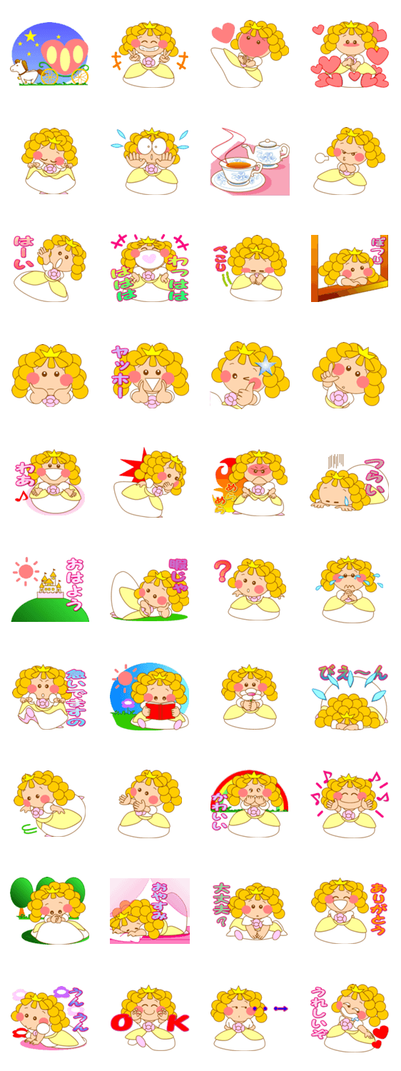 可愛いプリンセスのスタンプです。 家族や友達との楽しい会話のおともに如何でしょうか。