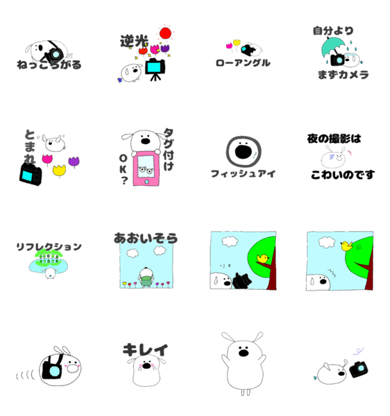 お散歩犬とやまるの、ほのぼのスタンプ。カメラマンバージョンです。