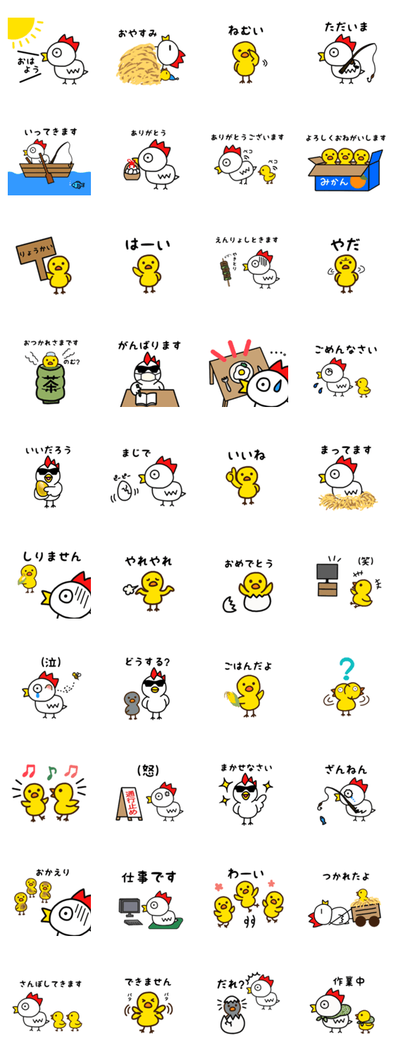 ニワトリの『にわとりぃ』とヒヨコ達(ピヨ太、ピヨ吉、ピヨ太郎)ヒヨコの見分けはつきません。