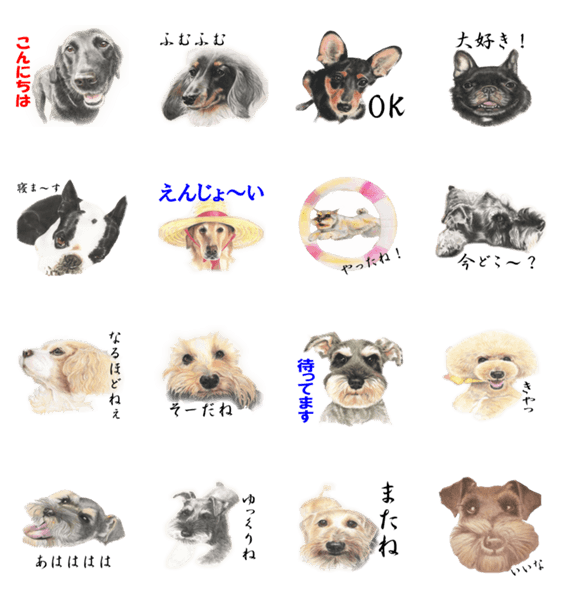 犬の色鉛筆画をスタンプにしました。まんま犬シリーズ第五弾