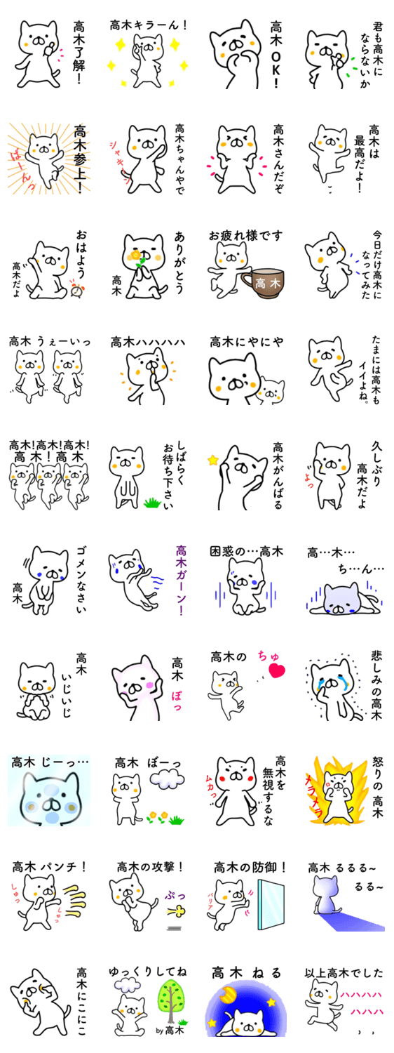 ネコの高木さんスタンプです。たかぎ…タカギ…たかき…タカキ…高木さん…。宜しければ使ってみて下さい。高木さん以外の方も使えます。