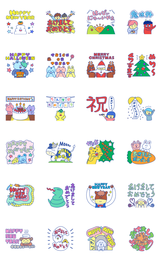 正月、誕生日、クリスマス、ハロウィンなど お祝い系スタンプが動く!ゆる~く動きます。