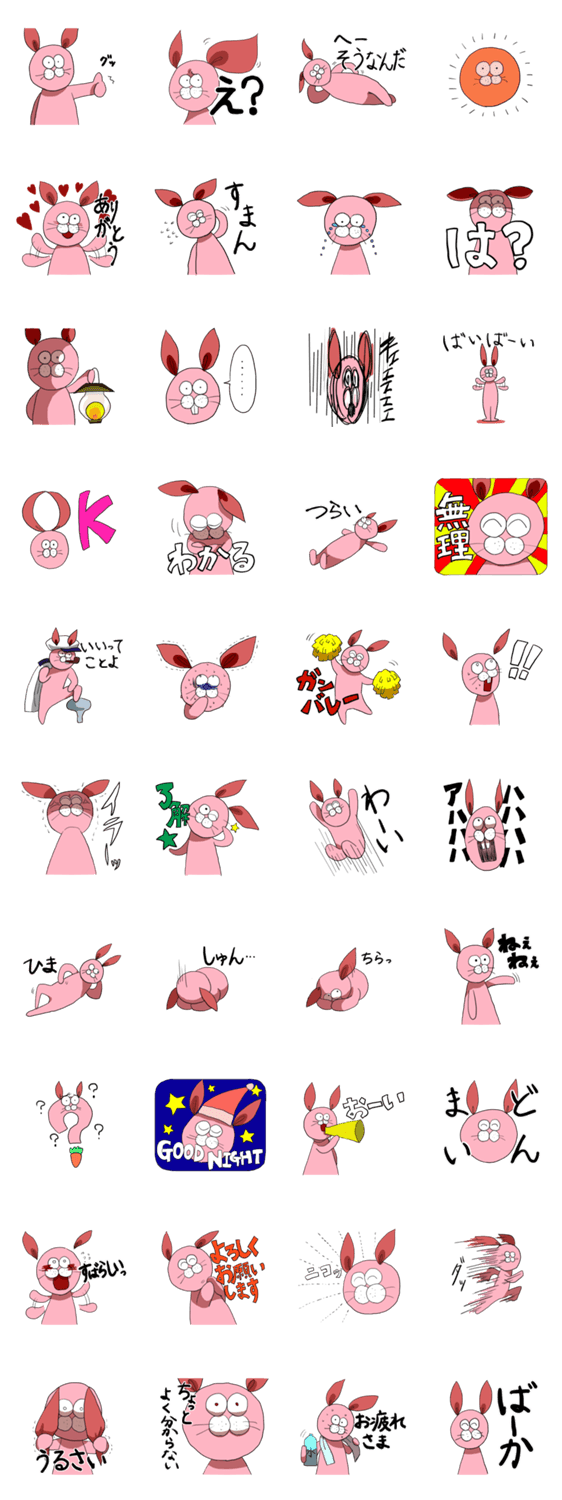 ちょっとイラっとするうさぎのスタンプです。気心の知れる友達向け。