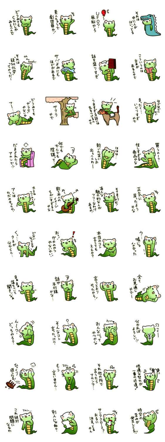 | スタンプ説明 | UMAのタッツェルブルムこと猫蛇さん 意外と現実主義者の猫蛇さんは夢を壊す事をバンバン言って困らせます ズバッといいたいあなたにオススメです |
