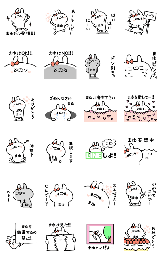あだ名が「まゆちゃん」の人が使える名前スタンプ!まゆ、まゆみ、まゆか、まゆこ、まゆゆ、が使えるよ! 訂正verです。