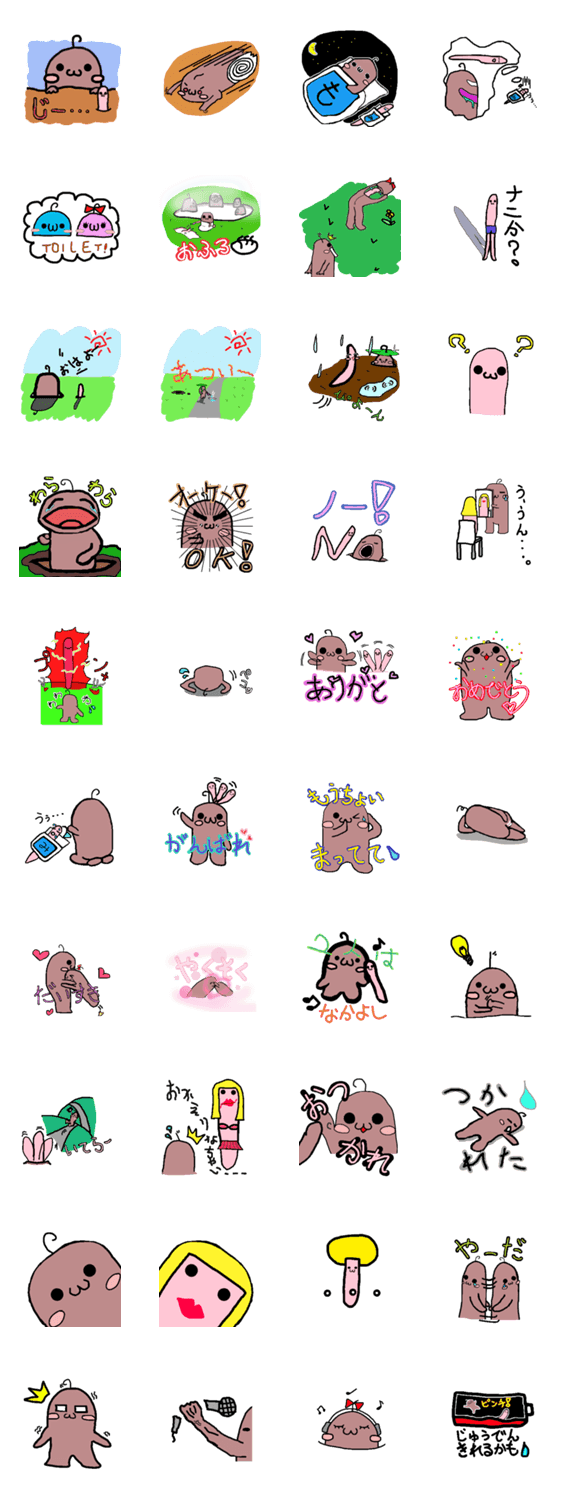 モグラのモグとミミズのミミのゆるかわキャラクタースタンプです^^多種多様に使えるように描いてみました^^