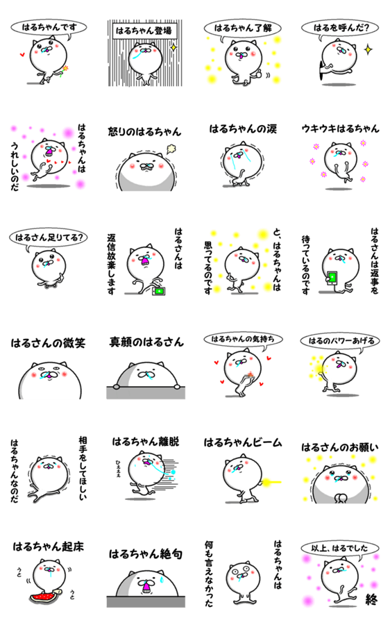 全国のはるちゃんに捧げるはるちゃん専用スタンプです。はるなさん・はるかさん・はるみさん・はるきさん・春田さん・春山さんにもオススメ