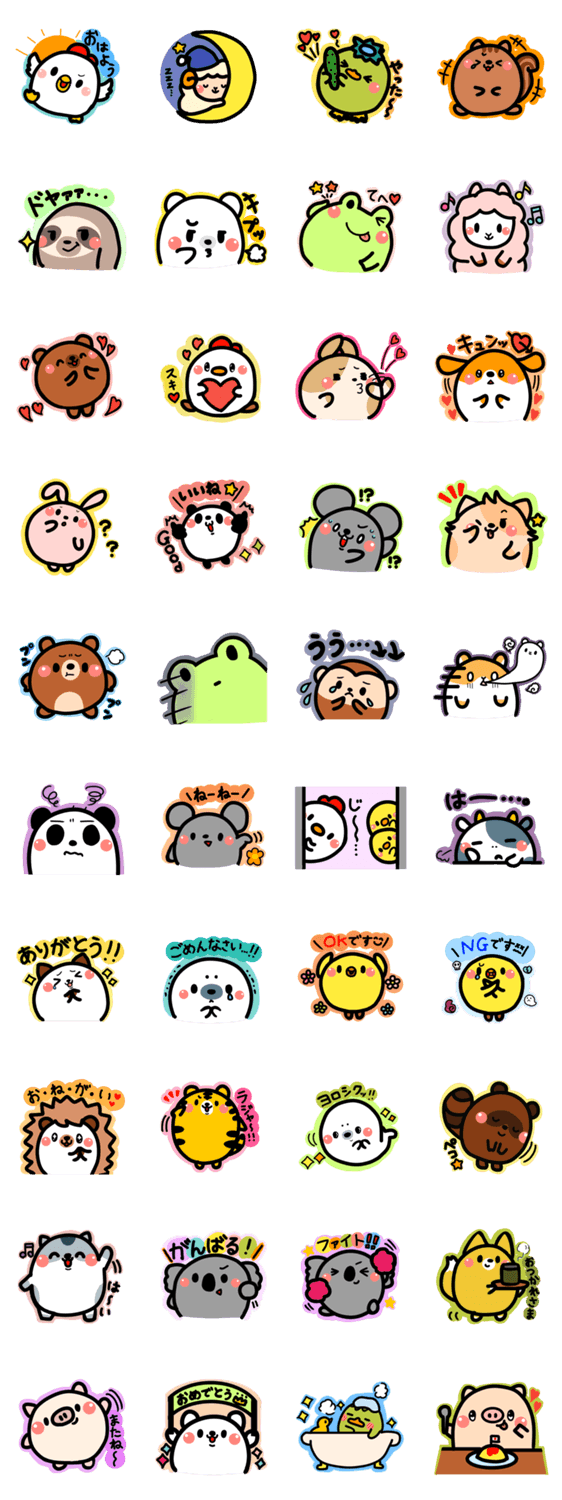 ゆるい動物たちのスタンプです。家族・友達にも使えます! まんまるな動物たちに癒されるかも?