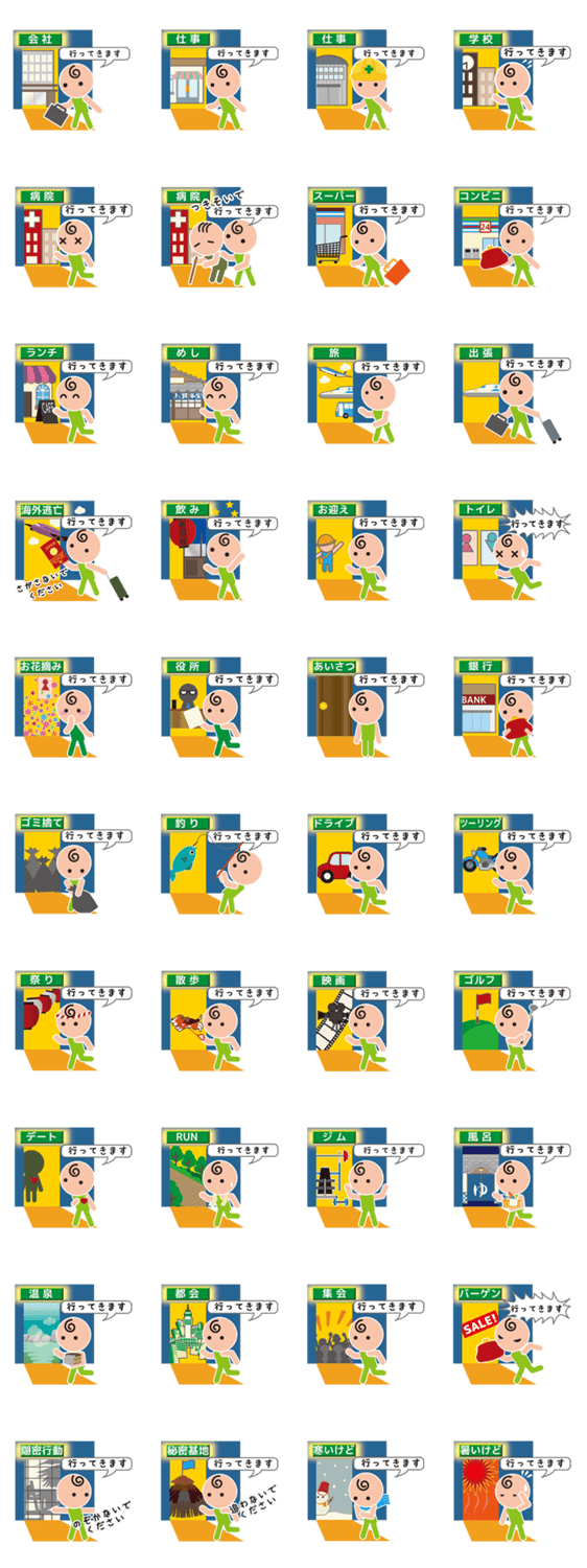 会社、学校、病院、趣味の場…いろんな場所に「行ってきます」スタンプを!