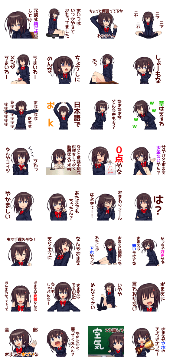 関西弁JKスタンプの毒舌verです。 送る相手を選んで計画的にご利用ください。