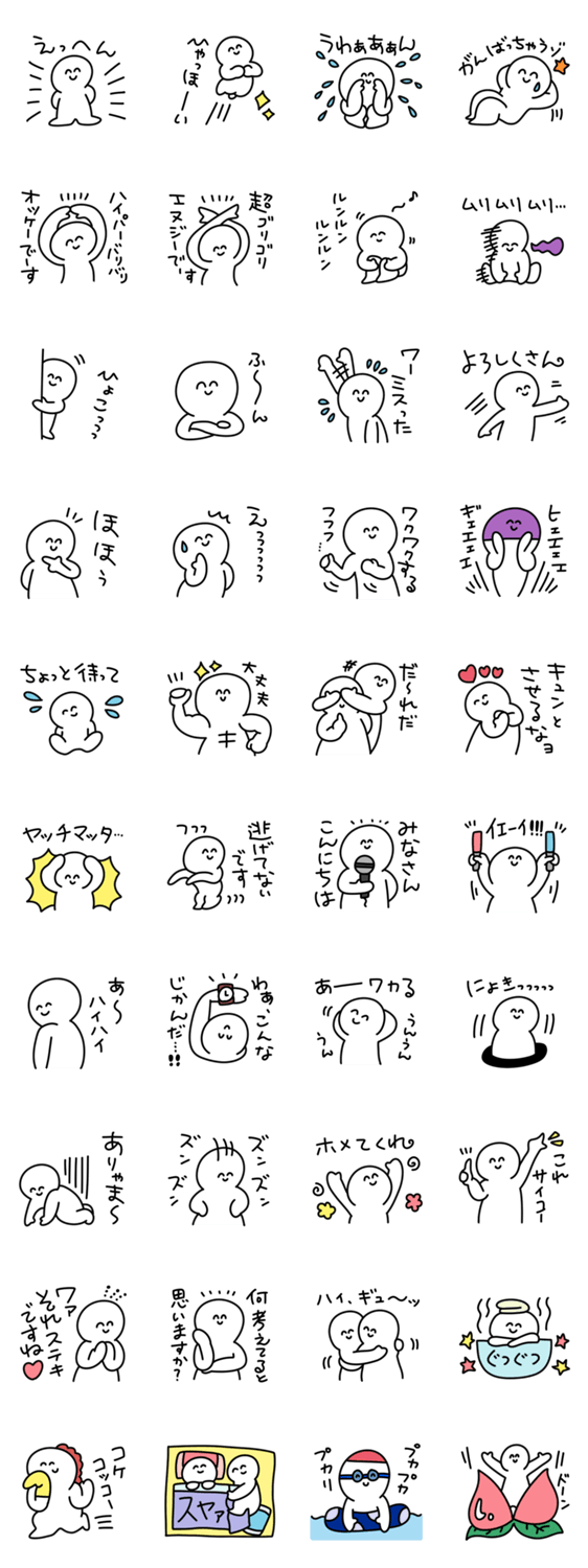 悲しいときも照れてるときも、いつも笑っているマルのスタンプ。白くて丸くてニコニコしています。