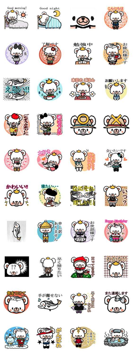 しろくまのお姫様モコと仲良しのシャケがキュートな日常スタンプです。