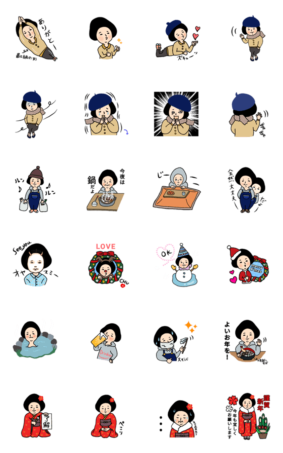 X'mas、年末、年始に使えるイベントスタンプ。 冬のあれこれ詰め込みました。相変わらずの地味女子ですが、 少しずつ垢抜けています!