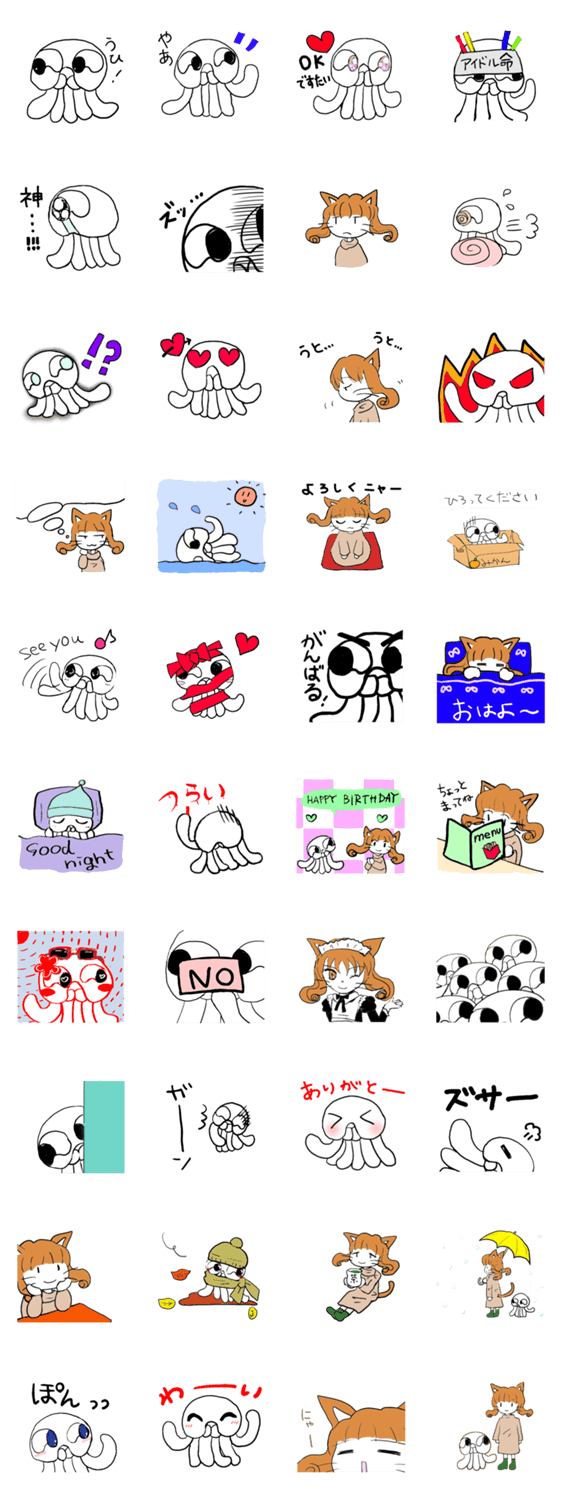くらげのボケリンと猫のフィーちゃん -LINEスタンプマニア