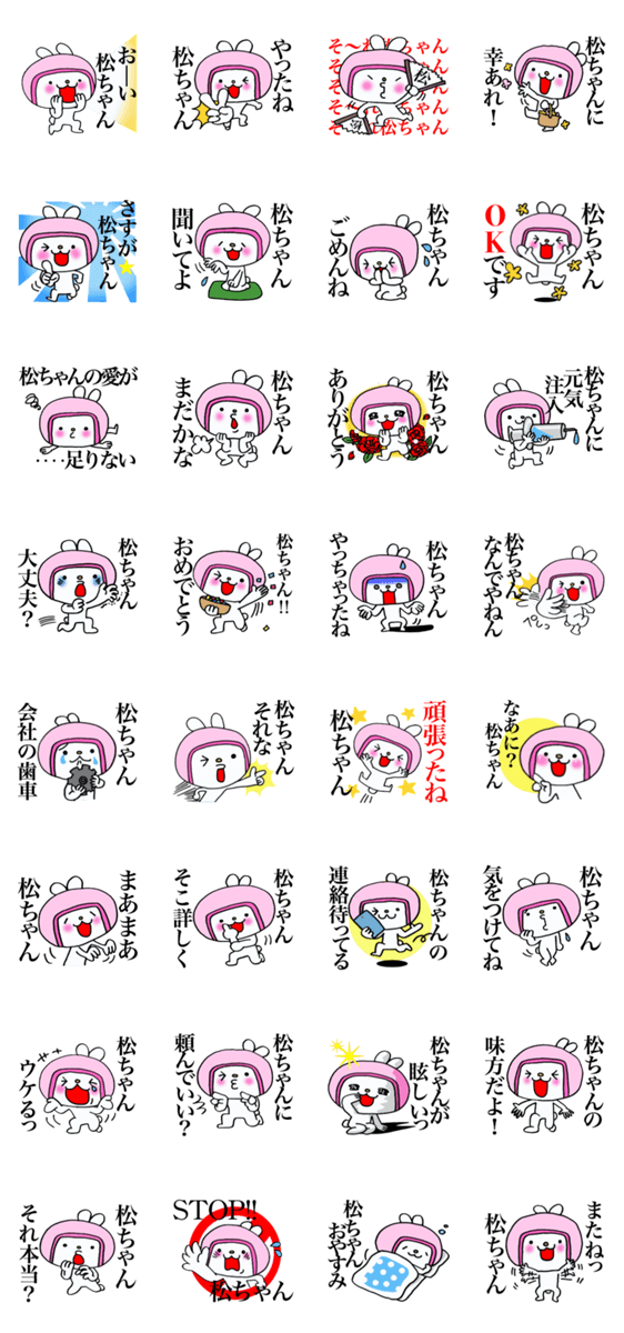 あだ名が松ちゃんと呼べるお友達がいる方に便利! 松ちゃんに語りかけれるスタンプです♪