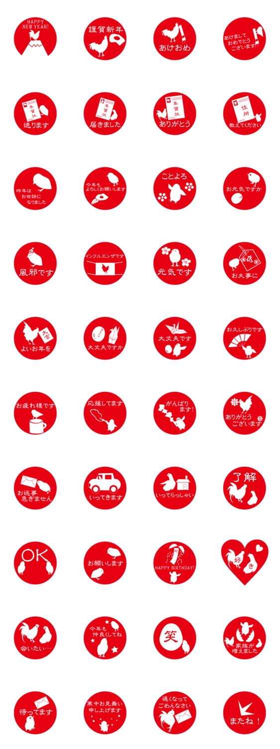 2017年の干支は酉年(とりどし)です。ひよこと鶏(にわとり)の大人も使えるシンプルなシルエット、はんこ風です。正月だけではなく日常でも活躍するスタンプです。