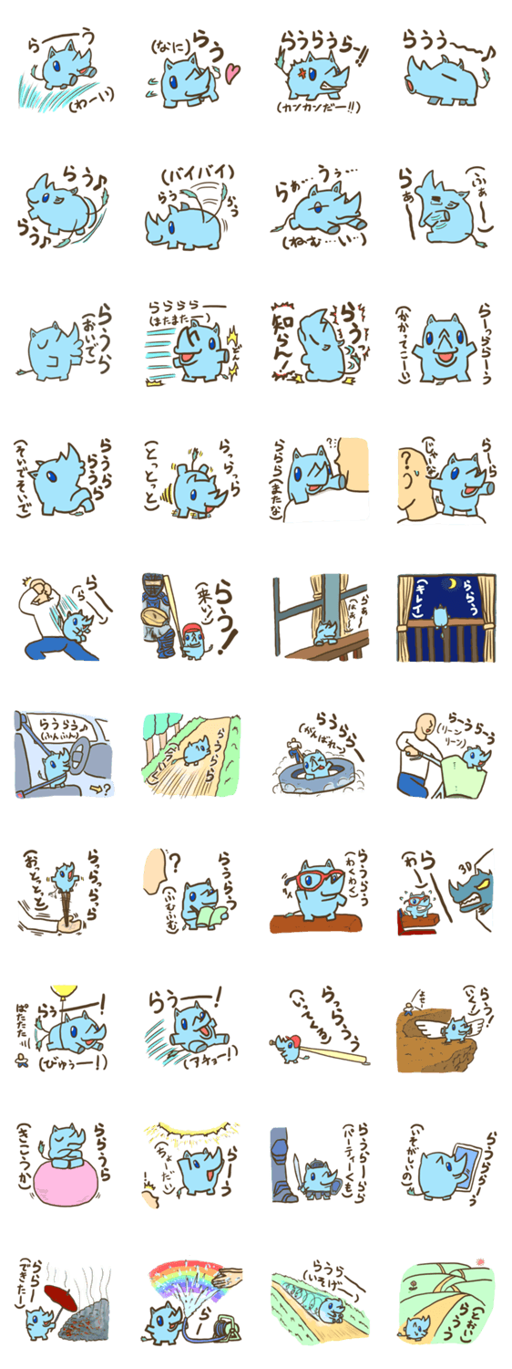 小さなサイ、豆サイのラウのスタンプの第2弾です。第1弾では他にも豆動物がいましたが、今回は豆サイだけです。