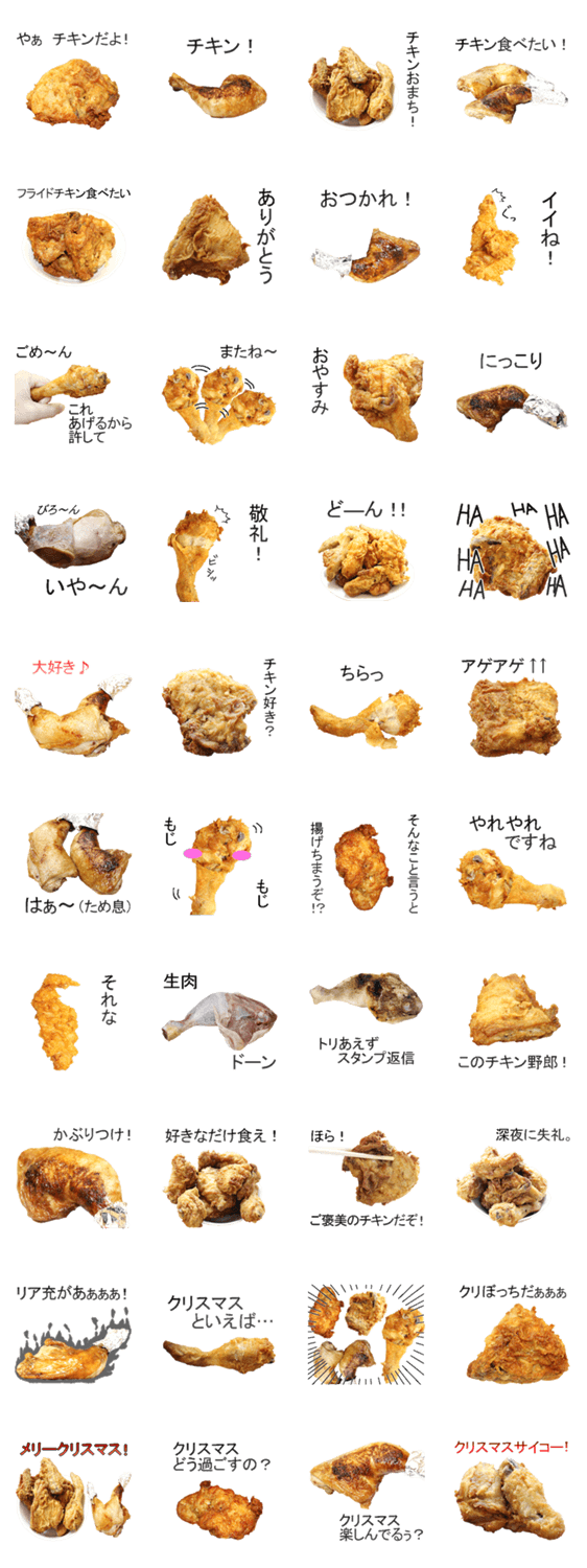 チキンの写真を使用した、実写スタンプです。クリスマスといえばチキンですよね。おいしいチキンのスタンプでメリークリスマス!フライドチキン食べたい!