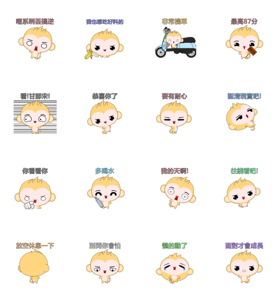 QQ Round Monkey-Animated Stickers-Part2 -LINEスタンプマニア