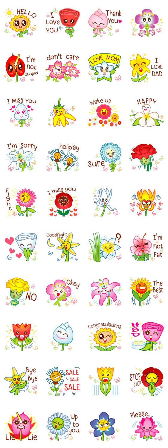 | スタンプ説明 | "Women are like flowers," flower cute variety. The meaning and feeling. Hello my friends, have fun flowers. |