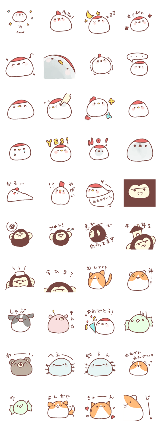 もちもちしたもちのような生き物の緩いらいんすたんぷです。