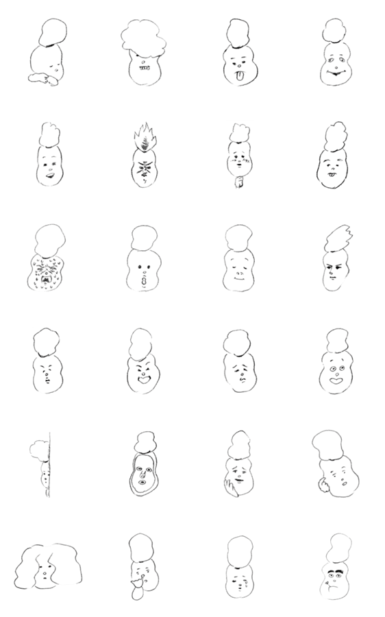 スタンプ説明 侍の見習い。表情と髪の毛のクセがすごい。