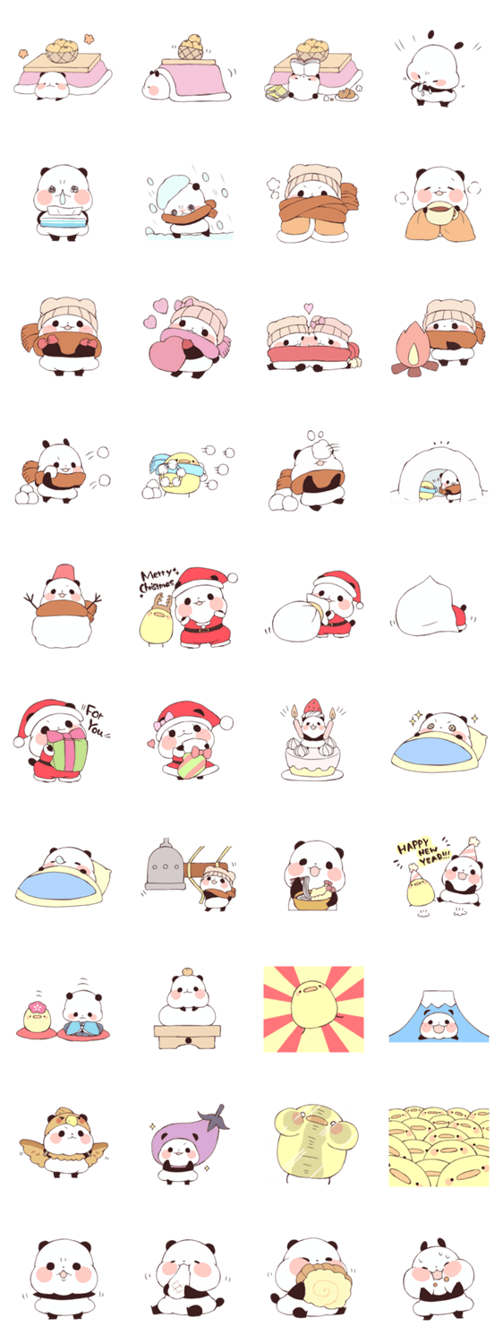 ゆるりんぱんだの過ごす冬のスタンプです。
