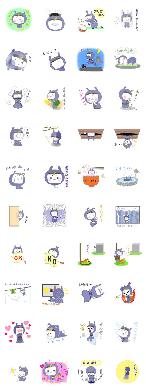 日常でよく使えるちょっぴりドジな、うさ忍のスタンプです。 うさ忍(うさにん)と一緒に会話を盛り上げよう!