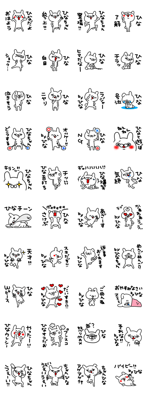 ひな・ひなこ・ひなの・あさひな。全国の「ヒナ」ちゃん専用の名前スタンプです。デカ文字&日常会話の基本セット。(ちょっぴりうざいうさぎ)