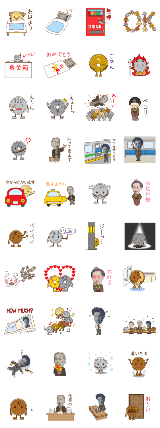 普段、何気なく使っているお金をキャラクターにしました。 日常に使うLineスタンプに使ってください。