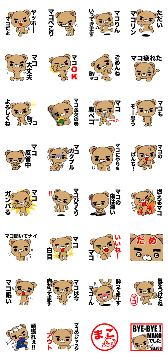 マコ、まこと、、、マコと名乗れる方が使いやすいスタンプです!