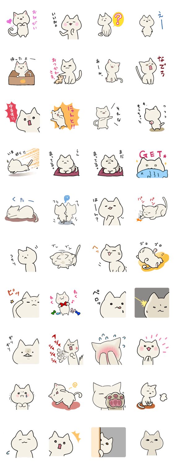 白ネコのあいうえお・・・ってるスタンプ