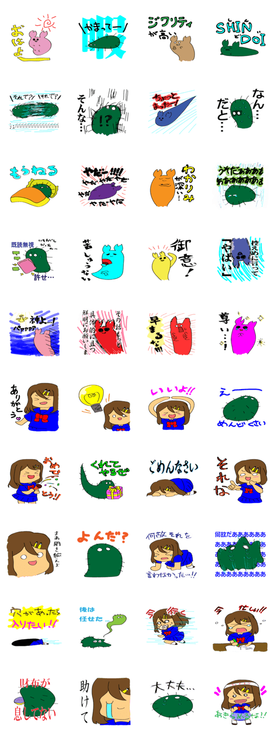 | スタンプ説明 | 春日井の商業高校から、キモカワな生き物達のLINEスタンプが登場!平凡な女子高生の筆子と、桜の化身さくらちゃん、謎多き観葉植物サボ江が、あなたの会話を盛り上げる! |