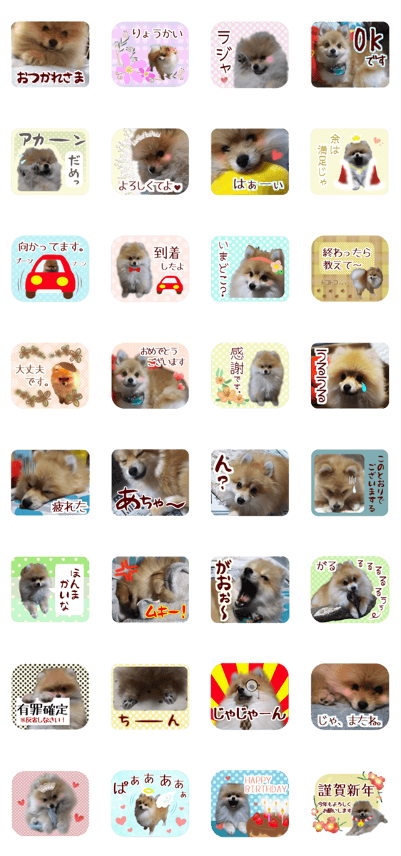 オレンジポメラニアンの実写版スタンプです。年始のご挨拶や誕生日に使えるスタンプもあります!ラブリーな我が家の愛犬をどうぞよろしく♪