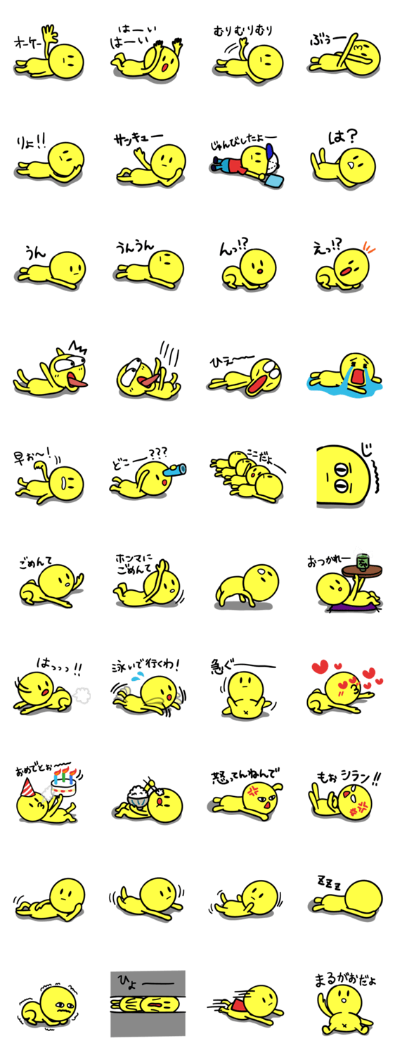 基本的に動かない。基本的に寝転んでいる。やる気のないスマイルくんスタンプです。※スマイルくんですが、笑いません。