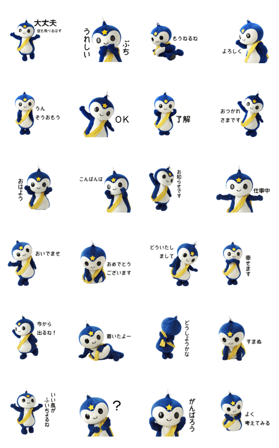 かんぷうくんのスタンプです。山口県平生町の大星山に住む風の妖精の男の子です。みんなの「つたえる」に笑顔を添えるために頑張ちょるんよ!楽しくつかってね★ミ