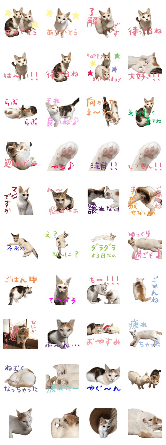 茶白猫と三毛猫の写真スタンプ -LINEスタンプマニア