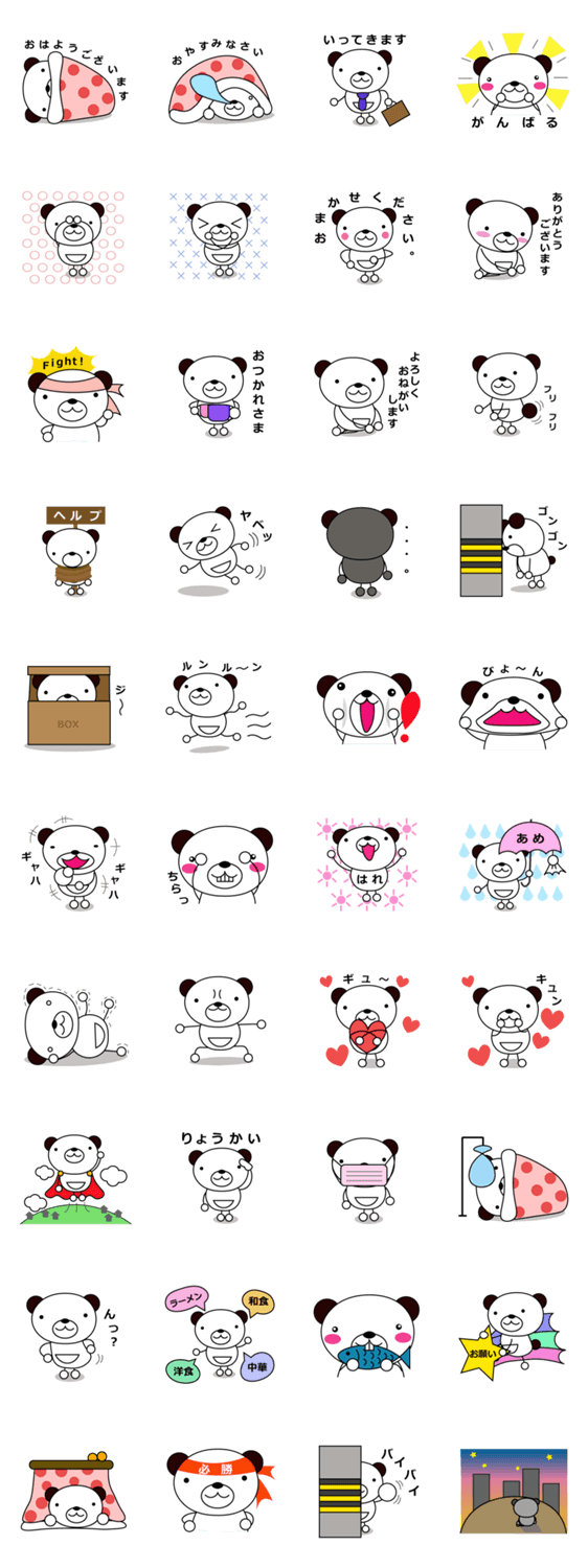 耳が黒くてパンダみたいけど、白クマのぽんたん。かわいくて、愛くるしい容姿に惹かれるぽんたん。日常会話で使えるスタンプ♪