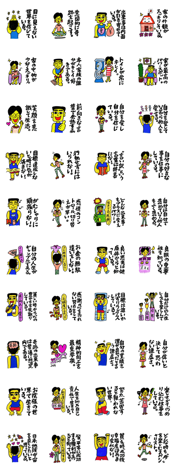 彼らは成功者のテツオさんとミツコさん。彼らがあなたとあなたのお友達に成功する為の考え方をアドバイスしてくれるよ!持ってるだけでなぜか安心できるスタンプ!