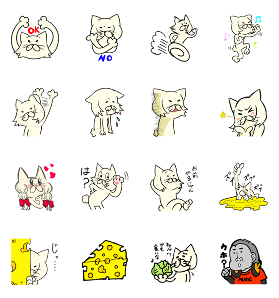 白くてうざかわなネコ、むうまんのスタンプです。好物のチーズとキャベツ、お友達のゴリラも一緒。
