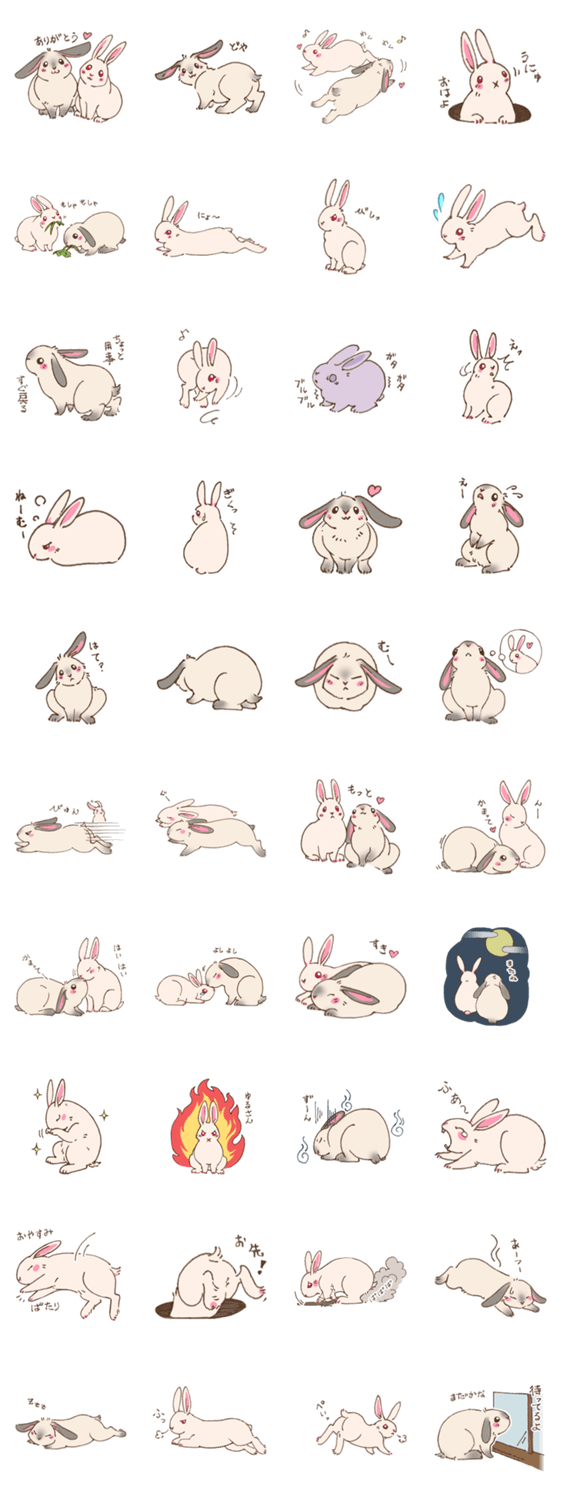 グレーのたれ耳ファーンと赤い目のペースの二匹がウサギならではのしぐさで会話を盛り上げます。