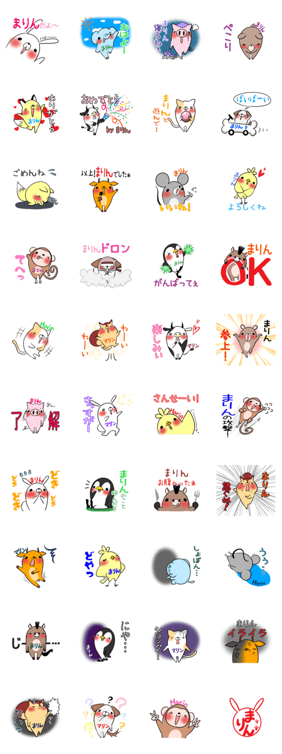 「まりん」が使う、専用スタンプです。 可愛いスタンプで、会話を華やかにしませんか?